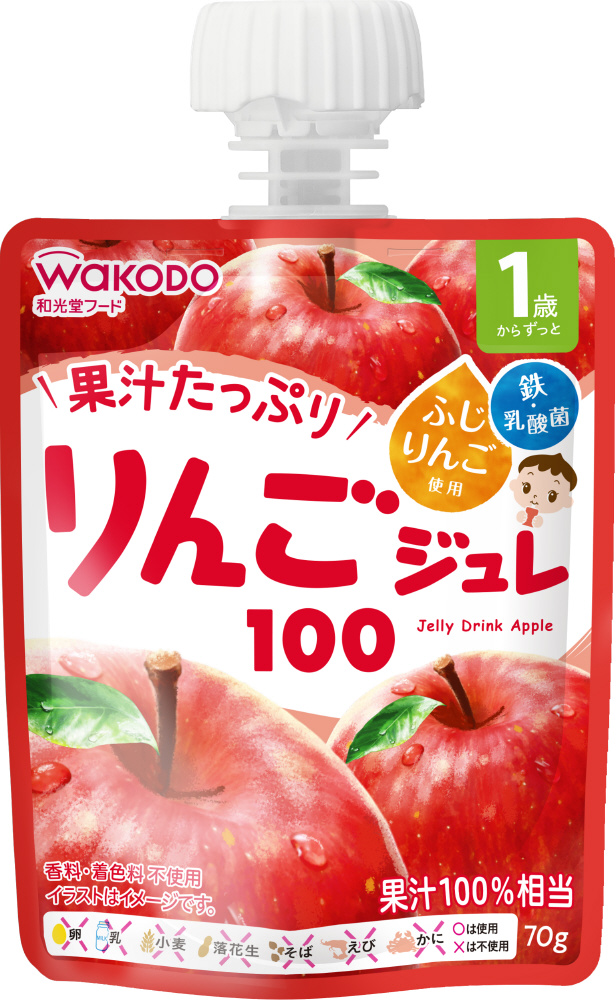 りんごの甘みと酸味をバランスよく、おいしく飲みやすい味に仕上げた、りんご果汁100%相当のジュレです。ふじりんご使用。鉄・乳酸菌(殺菌済み)入り。