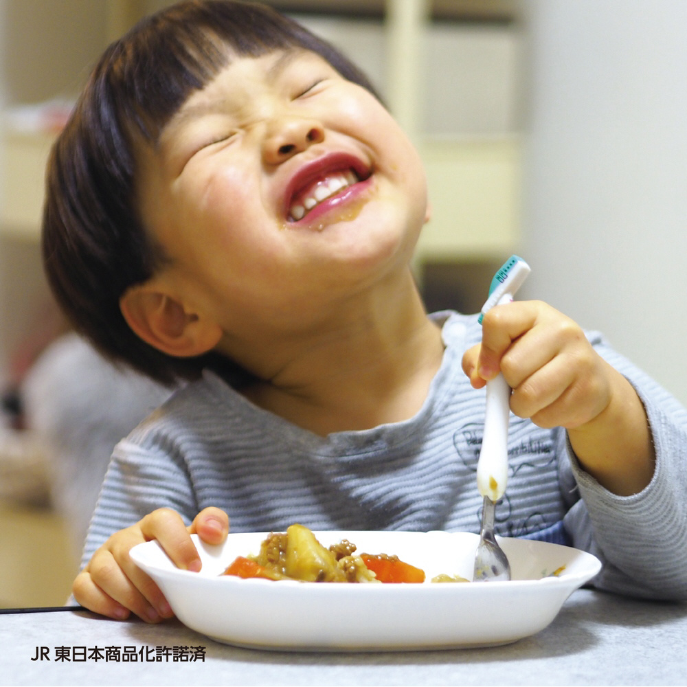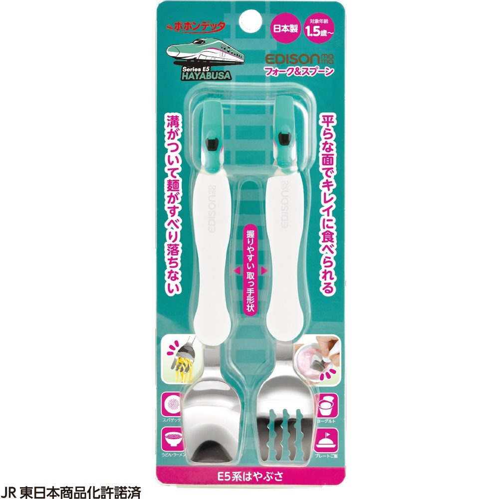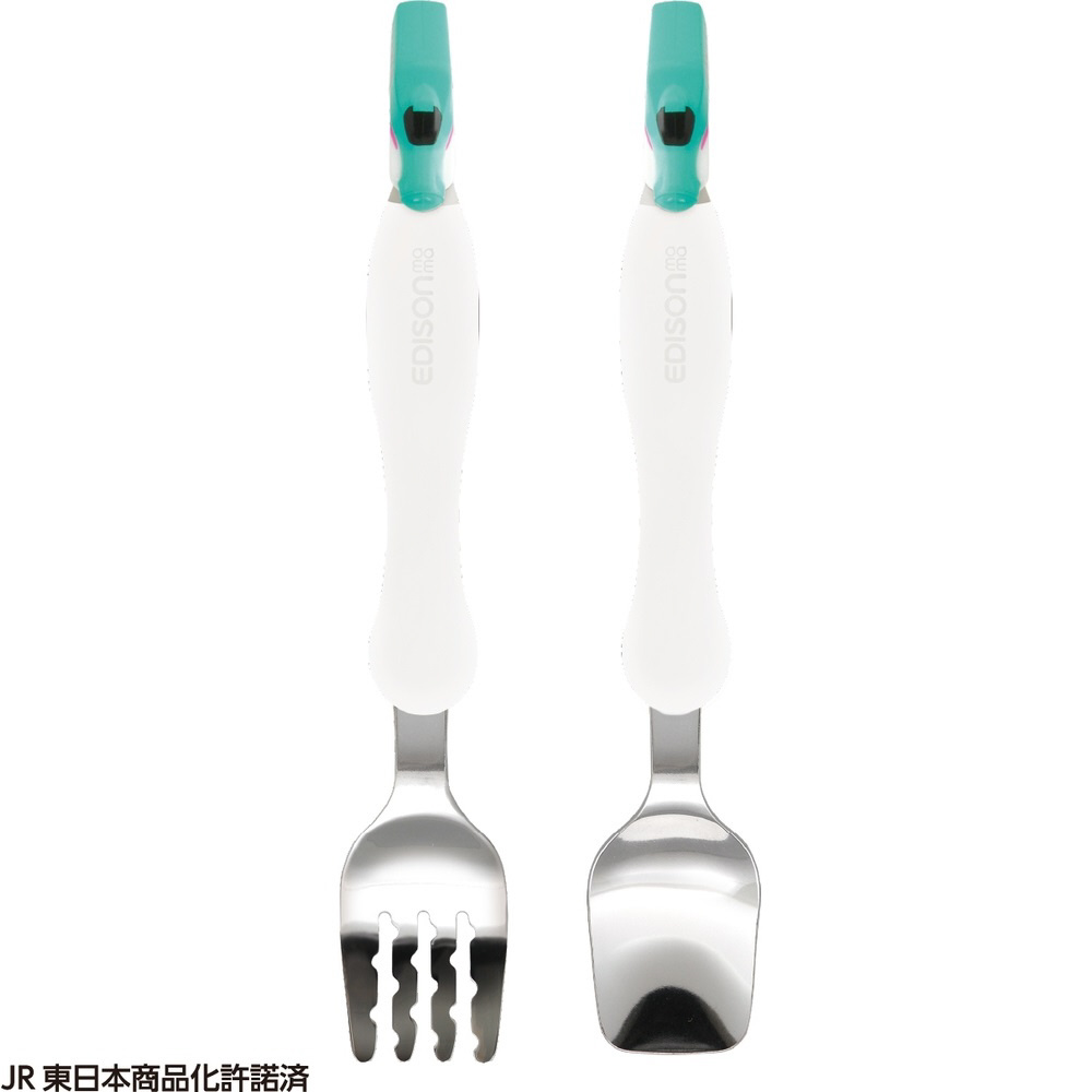 新幹線と一緒に楽しくお食事!溝がついて麺がすべり落ちないフォーク&スプーンにはやぶさが新登場!