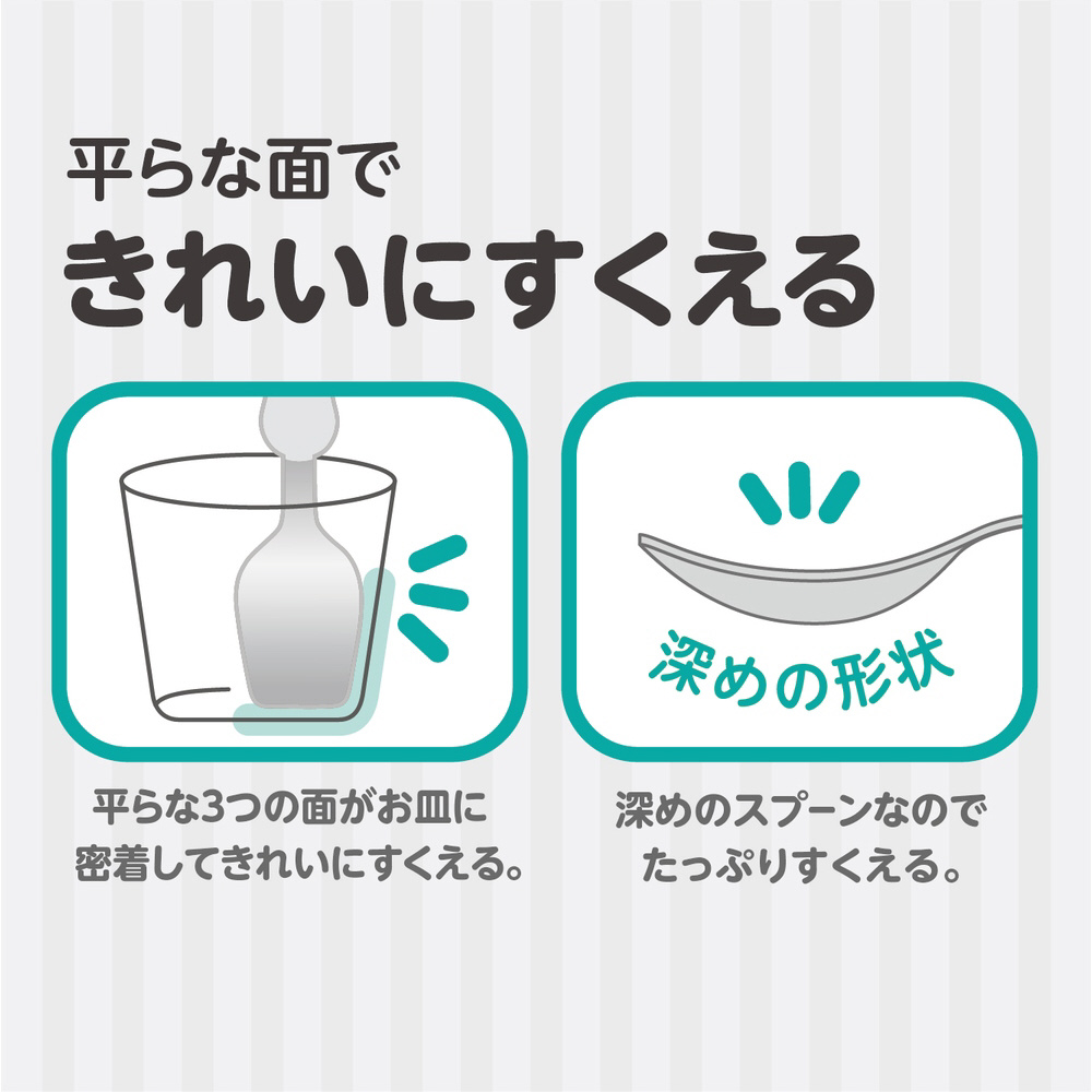 ■ヨーグルトカップや食器などの面にフィットして最後までキレイにすくうことができます。