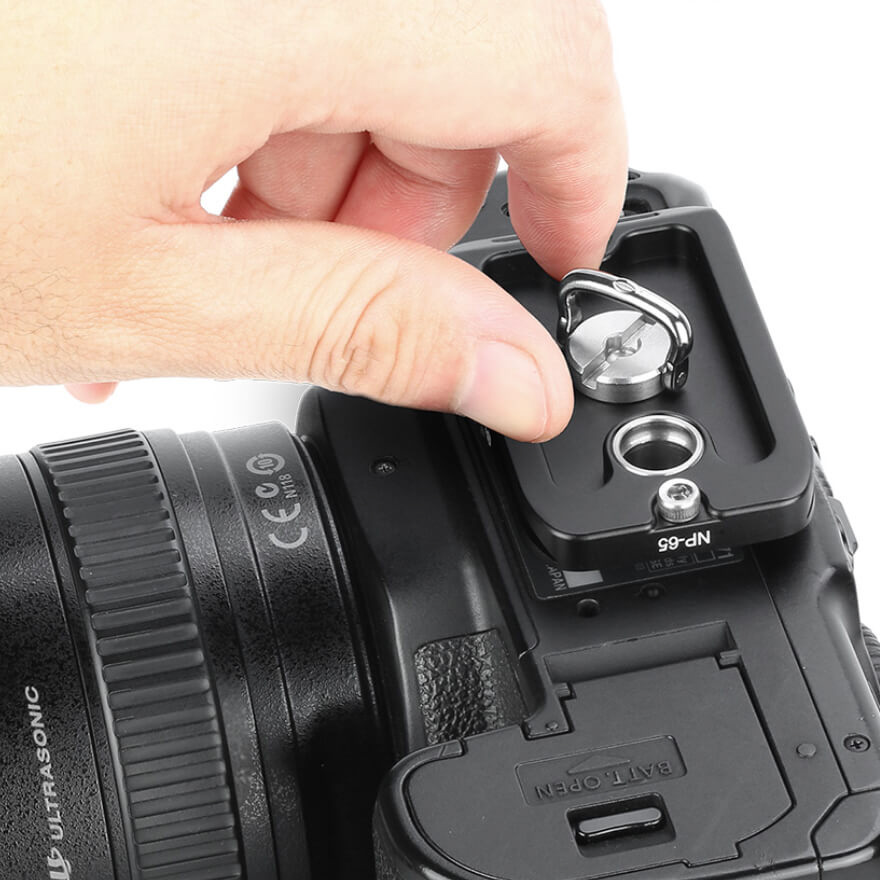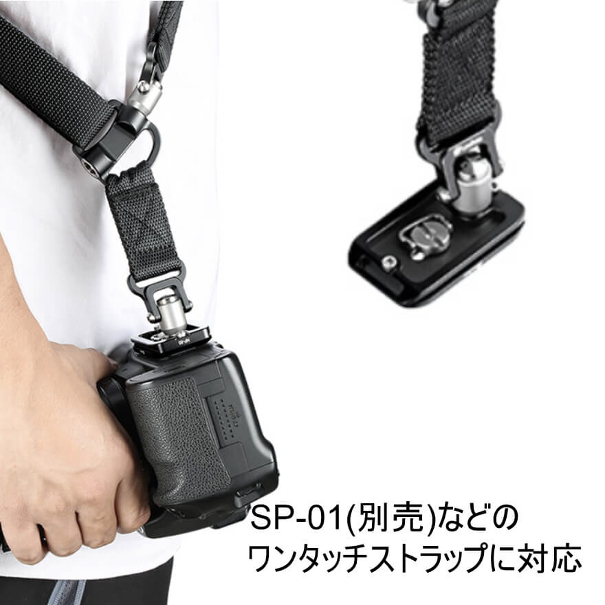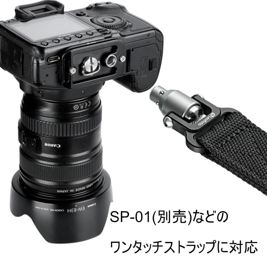 レオフォトのワンタッチストラップにも対応、ワンタッチで直接レンズをストラップに取り付けて持ち運ぶ事が出来ます。