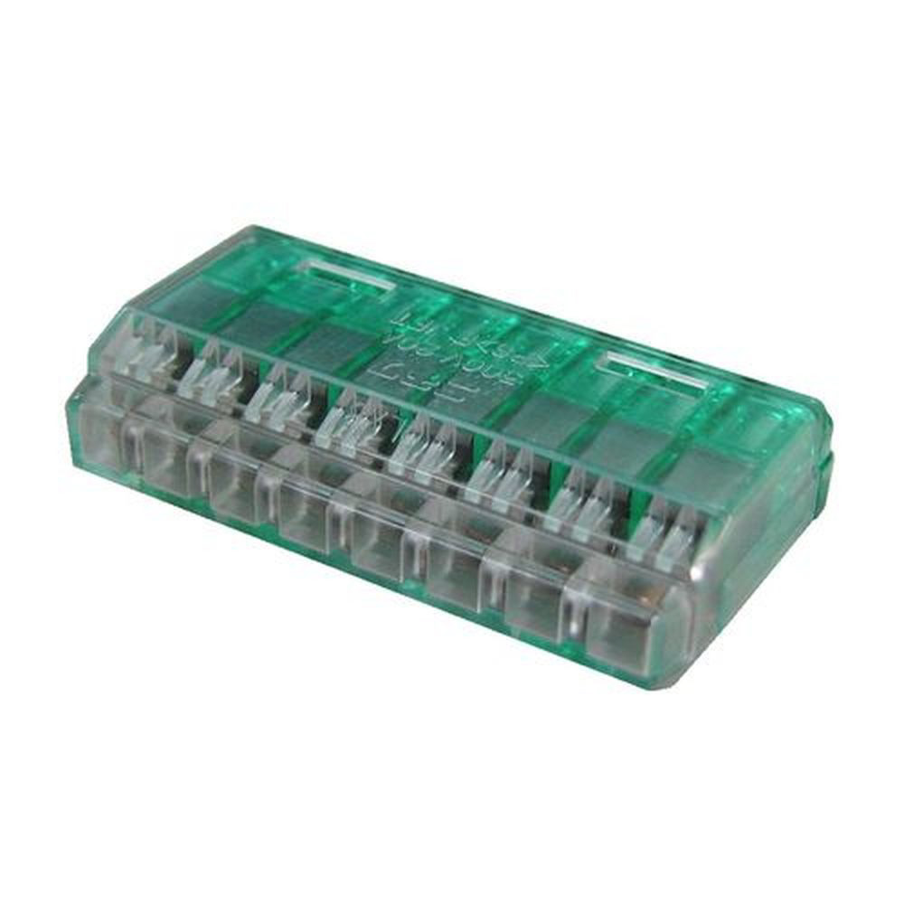 クイックロック 差込形 電線コネクタ 極数8 定格20A300V適用電線 銅/単線φ1.6mm・φ2.0mm 5個入 緑透明 QLX8-05P