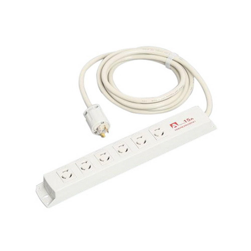 ●6つのさし込み口付き、接地形2P 15Aの定格で、合計15Aまで使用できます。