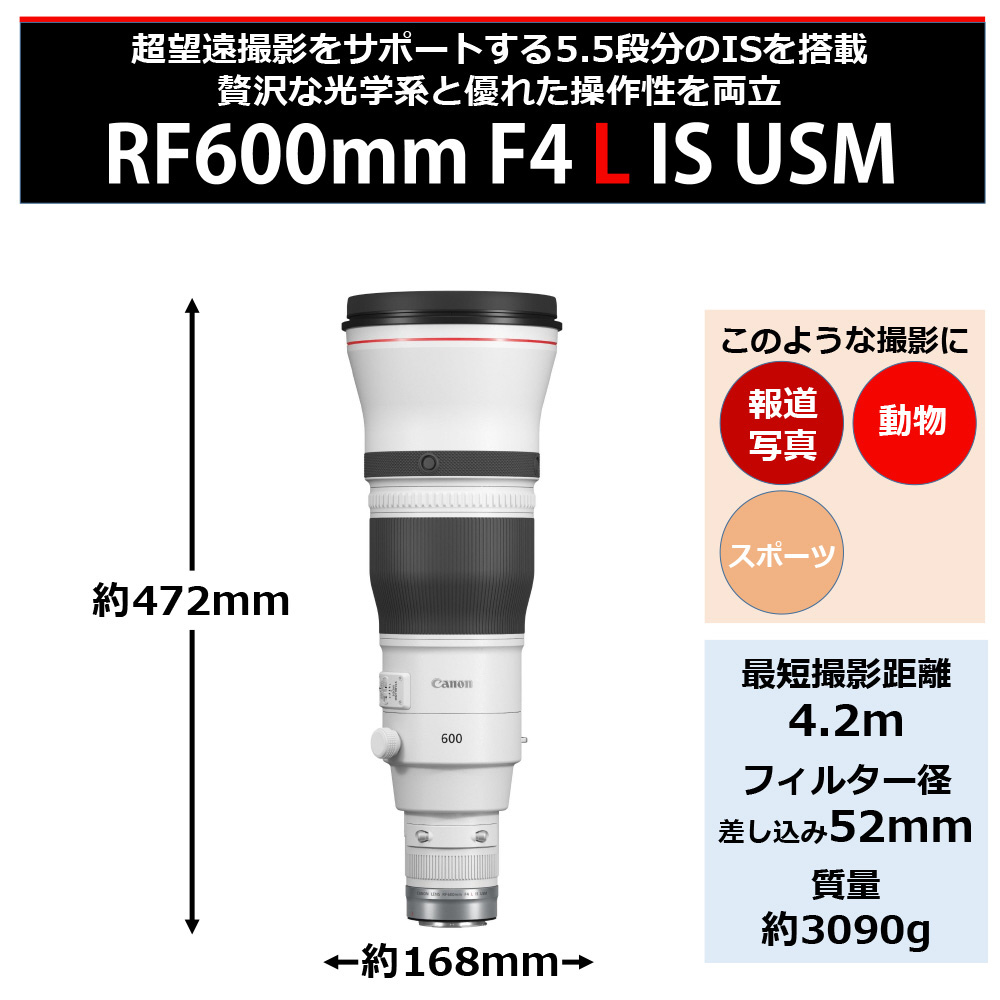 高画質と機動性を両立した「RFマウント」の大口径超望遠レンズ”キヤノン RF600mm F4 L IS USM”