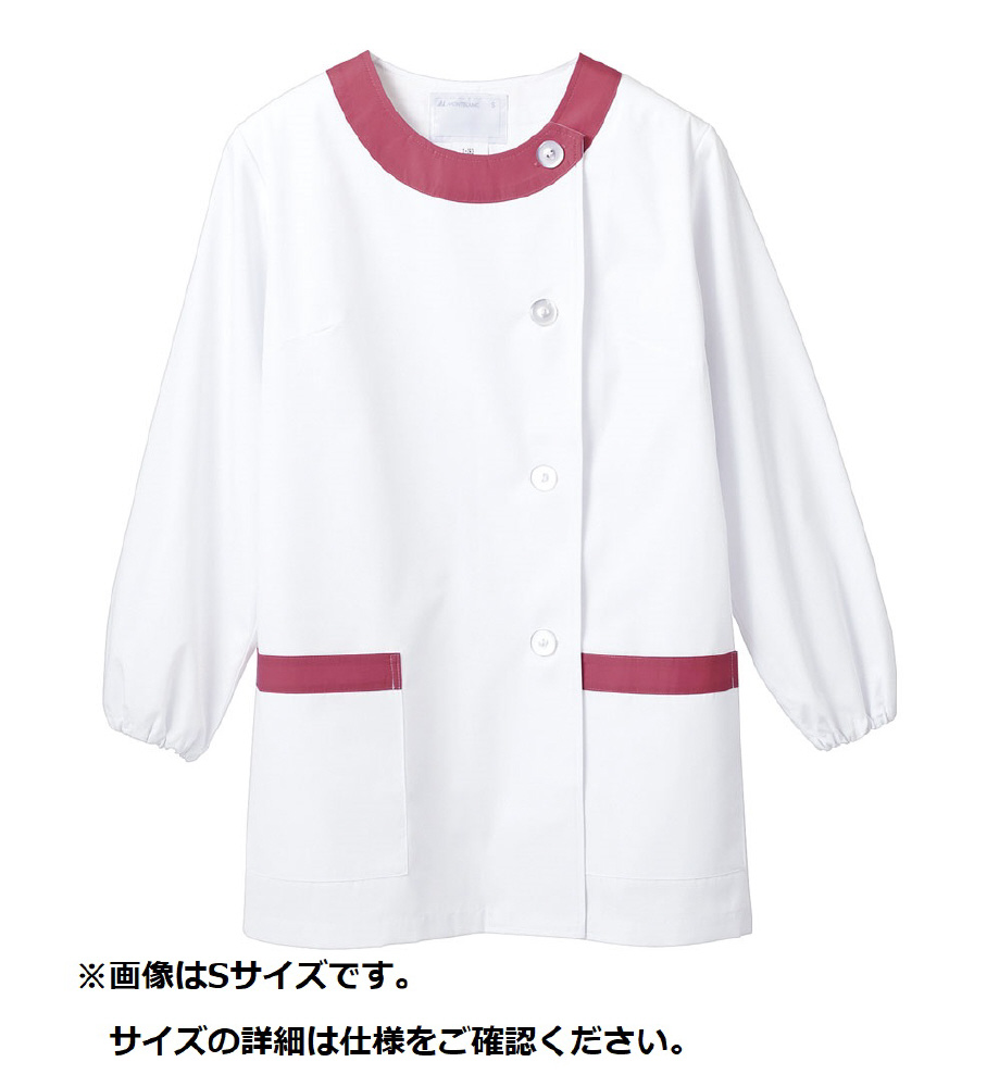 女性用調理衣長袖 白/ピンク 1-093 M <SMV1704>