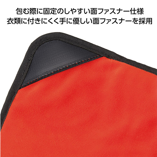 包む際に固定のしやすい面ファスナー仕様。衣類に付きにくく手に優しい面ファスナーを採用しています。