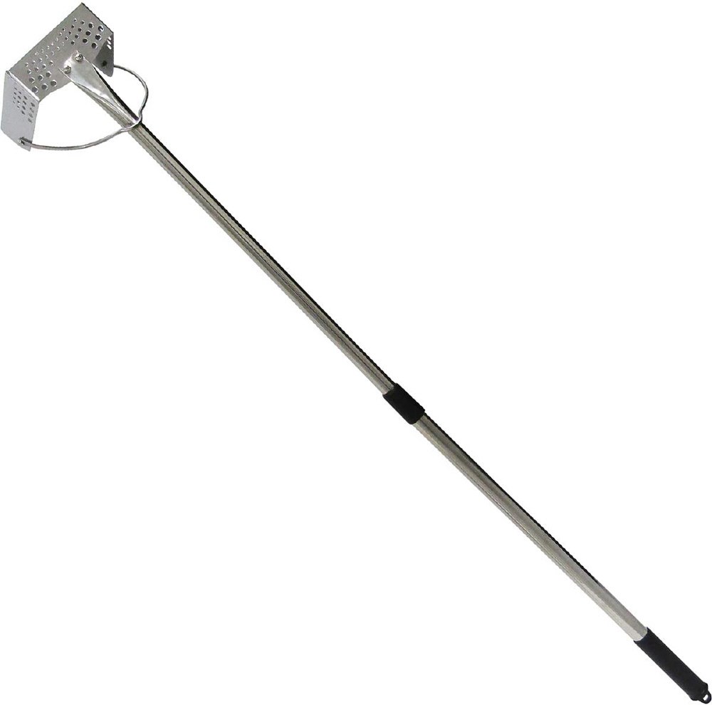 側溝やU字溝などの清掃に。先端のR(丸み)で、U字溝にも便利。新設計 4面多孔タイプで水はけのよい皿部。皿だけでなくパイプもステンレス製。サビに強くお手入れ簡単。丈夫で長持ち。パイプが伸縮するので保管にも便利。