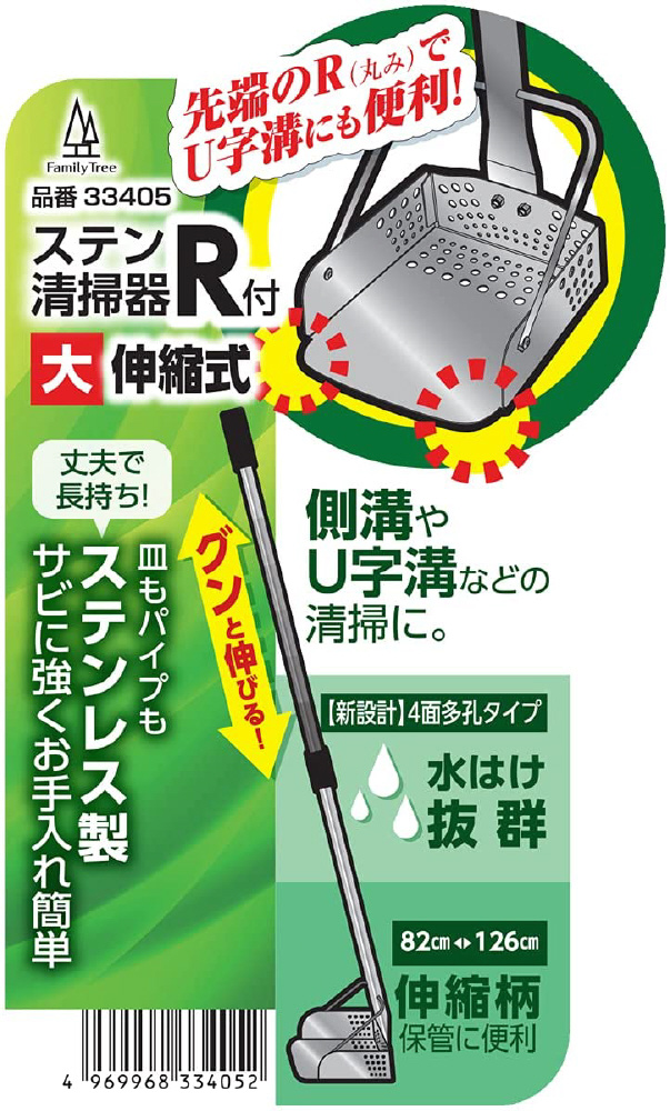 Family Tree ステン清掃器 R付 伸縮式 (82cmから126cm) Family Tree