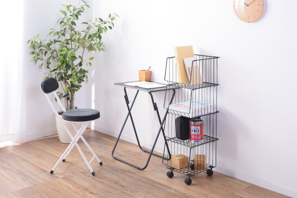 スタッキングワゴンは機能的なだけではなく、芸術品のように美しい見た目も魅力の一つです。細いスチールフレームで作られた繊細なデザインが、アクセントとしてお部屋の印象をアップさせてくれるので、おしゃれに魅せるインテリアとしてもお使いいただけます。