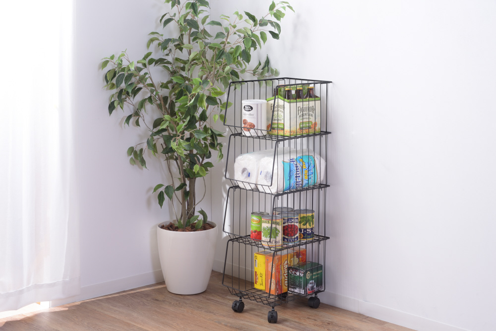 ご自宅での使用だけでなく、店舗の陳列棚としてもご利用いただけるスタッキングワゴン。キャスター付きで手軽に動かすことができるので、リビングやお店のディスプレイなど様々な場所で活躍します!