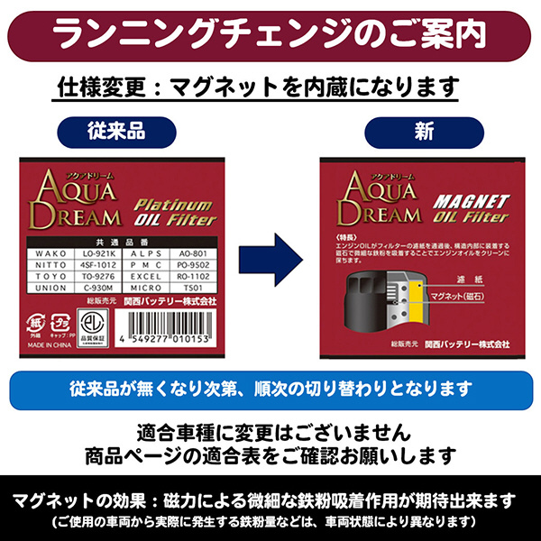 ●AQUA DREAM PLATINUM オイルフィルターは国産車主力車種に対応するラインナップで展開しています。
