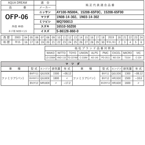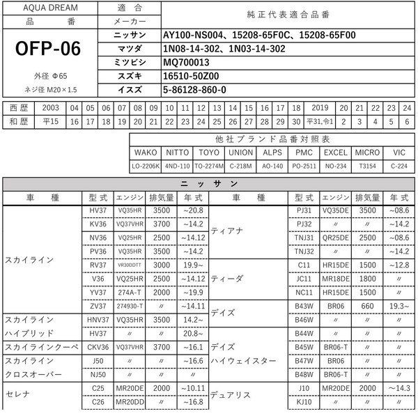 ■互換品番:「WAKO」LO-2206K ・ 「NITTO」4ND-110 ・ 「TOYO」TO-2274M ・ 「UNION」C-218M ・ 「ALPS」AO-140 ・ 「PMC」PO-2511 ・ 「EXCEL」NO-234 ・ 「MICRO」T3154