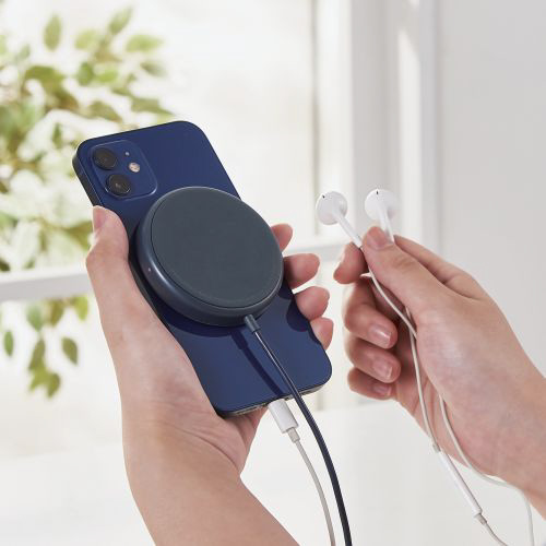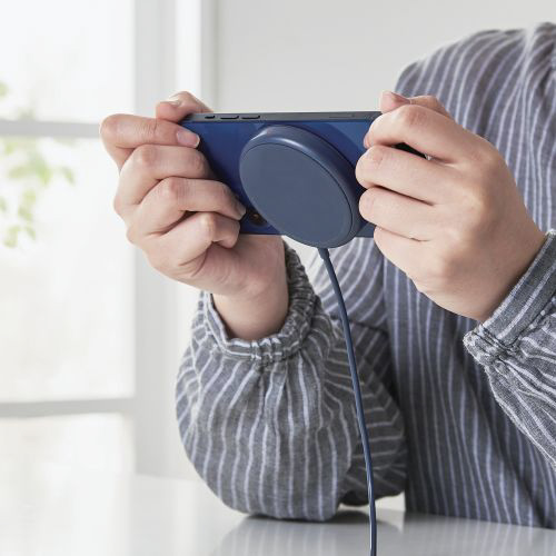 MagSafe対応iPhoneシリーズにマグネットで固定でき、5Wで充電ができるワイヤレス充電器です。