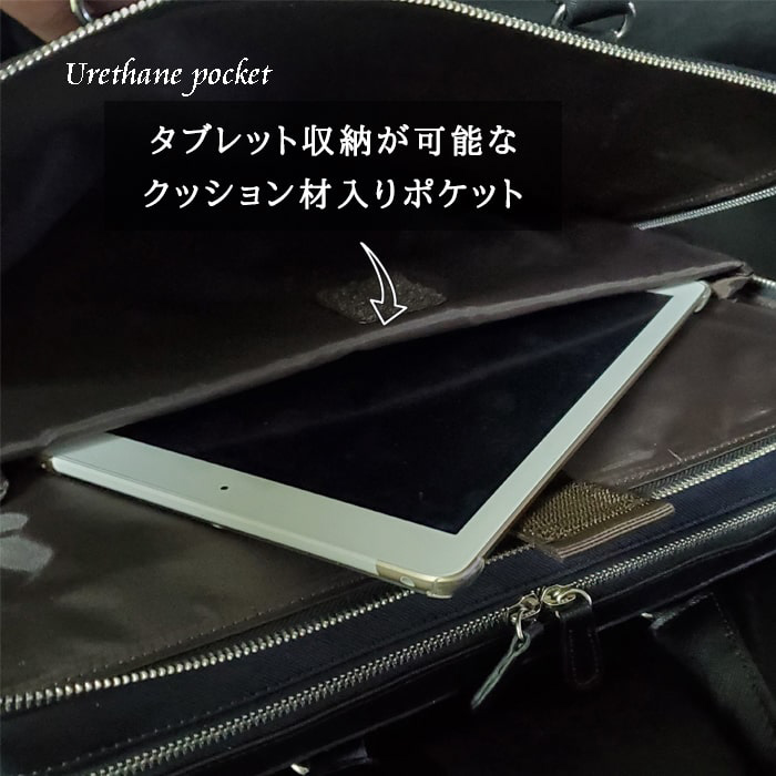 仕様1 特殊なポストミシンを使い、どんな角度から見ても美しいフォルムで高級感のあるデザインのブリーフケース