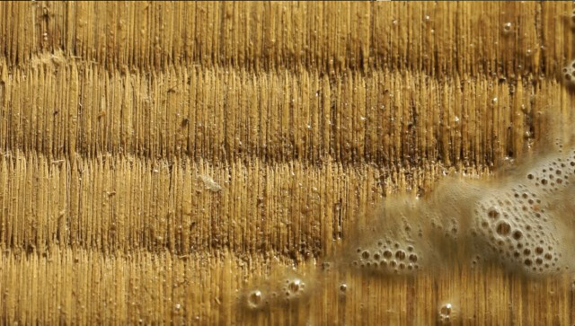 この汚れを今までは「掃除機がけ」や「水拭き」などしかされなかったため、い草の目の間につまり、長年蓄積されていました。