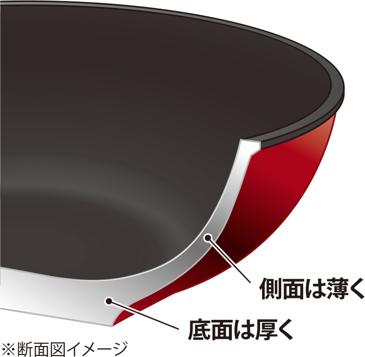 この厚底で熱を充分に蓄え、全体を均一に加熱できるので、おいしく調理することができます。