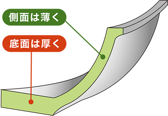 「加熱性能に優れた厚底フライパン」を軽量化。