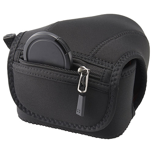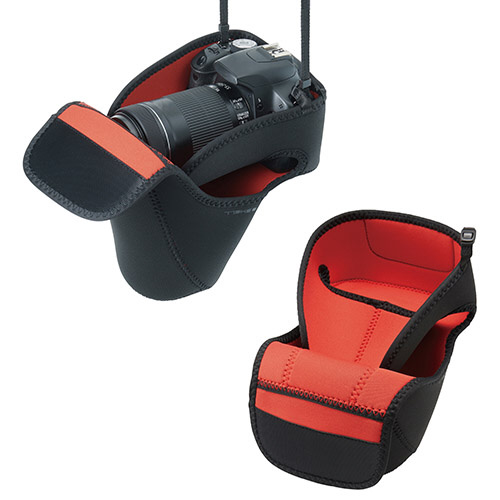 ウェットスーツなどに使用される、水に強く伸縮性とクッション性に優れた合成ゴム素材をクッション材に採用。厚手なので収納物を傷や衝撃からしっかり保護します。カメラの形状に合わせた立体デザインでスリムに収納可能です。