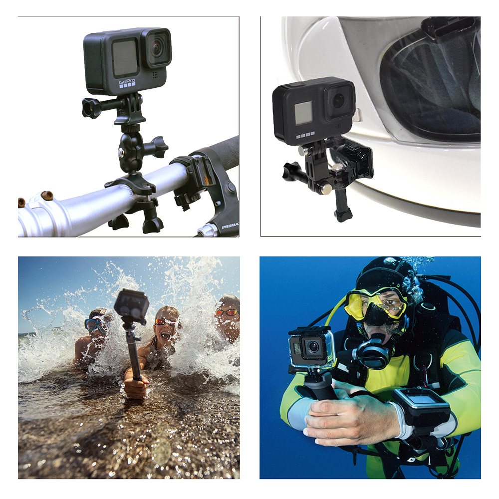 激しいアウトドアシーンでも耐えられる耐久性と握りやすいデザイン・高品質で、高性能のアクションカメラに相応しいマウントアクセサリーです。