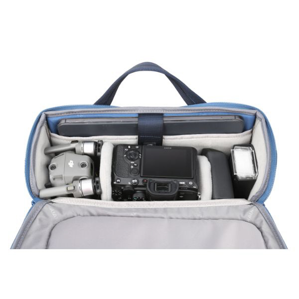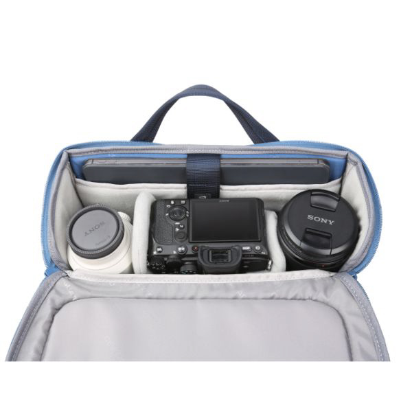 シーンを問わず使えるカメラバッグです。クッション性に優れた内装で、ミラーレスカメラ、コンパクトカメラのほかに交換レンズ(1〜2本)、フラッシュや必要なアクセサリー類、12.9インチまでのタブレットを収納できます。