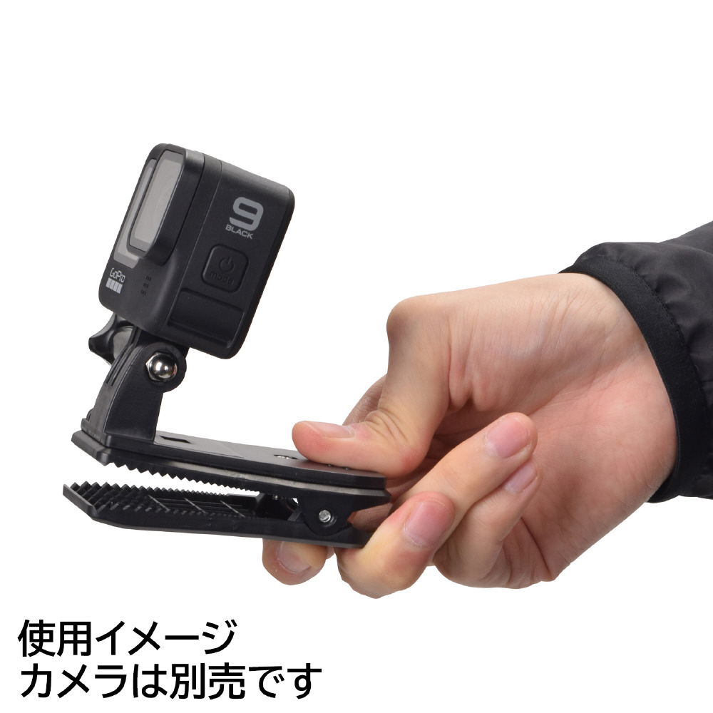 プレートが360°回転するGoPro対応クリップマウント。強力クリップ&ギザギザ加工の安心設計。登山や散歩、釣りなどのアクティビティーにお勧め。アイデア次第で撮影のバリエーションが広がります。