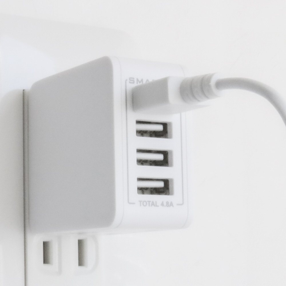 コンパクトなデザインでありながら、USB Type-Aのポートを4ポート搭載しており、スマートフォンや電子タバコ、Wi-Fiルーターなどを同時に4台まで充電することが可能です。4ポートで合計4.8Aの出力なので、お手軽に急速充電を利用することができます。