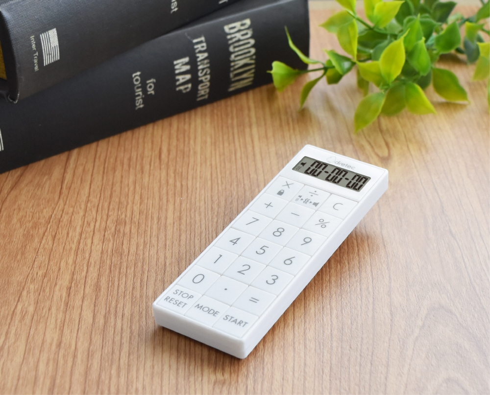 最大99時間99分99秒まで設定でき、時計機能、電卓機能も搭載。