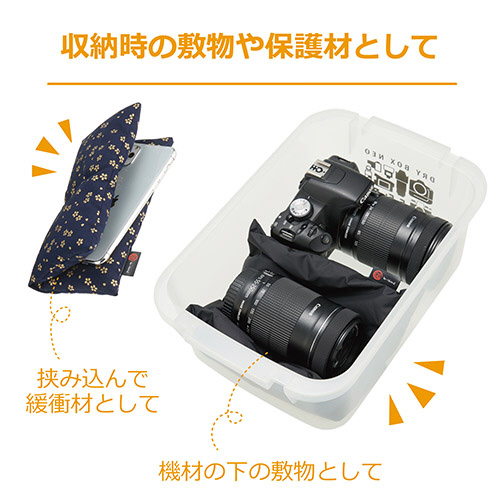 レンズ交換時の簡易置き場や、保管時の緩衝材としてなど、アイデア次第で多様な使い方ができる座・ぶとん。