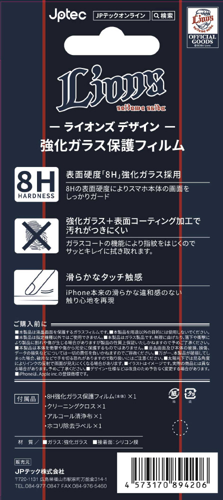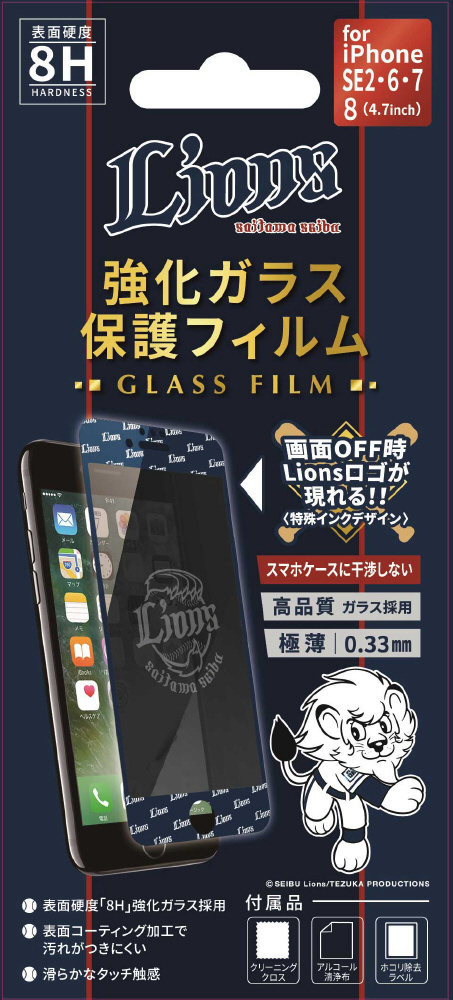 ライオンズ強化ガラス保護フィルム iPhoneSE(第3・2世代)/6/7/8 共用