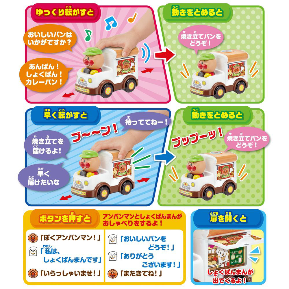 走行音が流れてアンパンマンたちがパンを届けに行くシチュエーション遊びが楽しめます!!