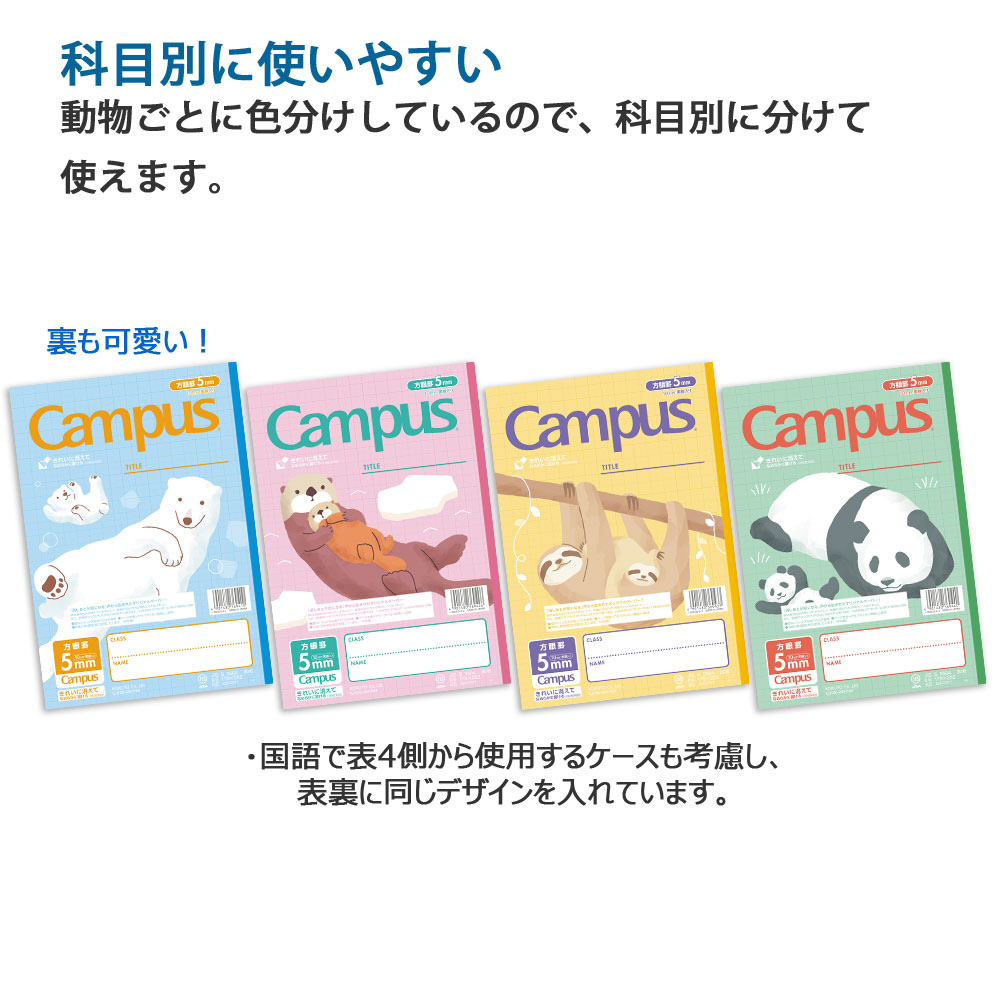 ノート(用途別) アニマル柄 Campus(キャンパス) 4柄パック 30AS10-5X4 [セミB5・B5 /5mm /方眼罫線]