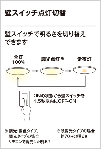 壁スイッチ:全灯→メモリー点灯(調光・調色)→常夜灯