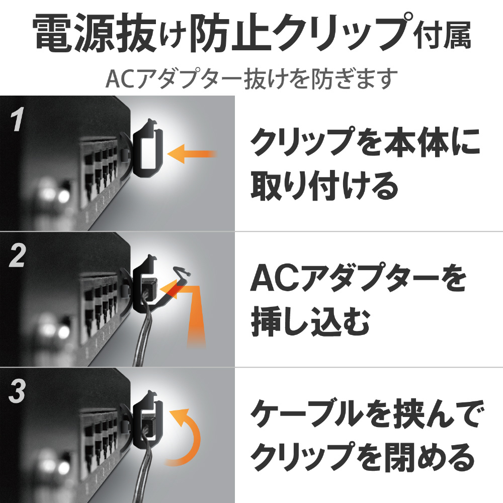 ストレート/クロスケーブルを自動判別する「Auto MDI/MDI-X」機能を全てのポートに搭載。 接続ミスを防ぎます。