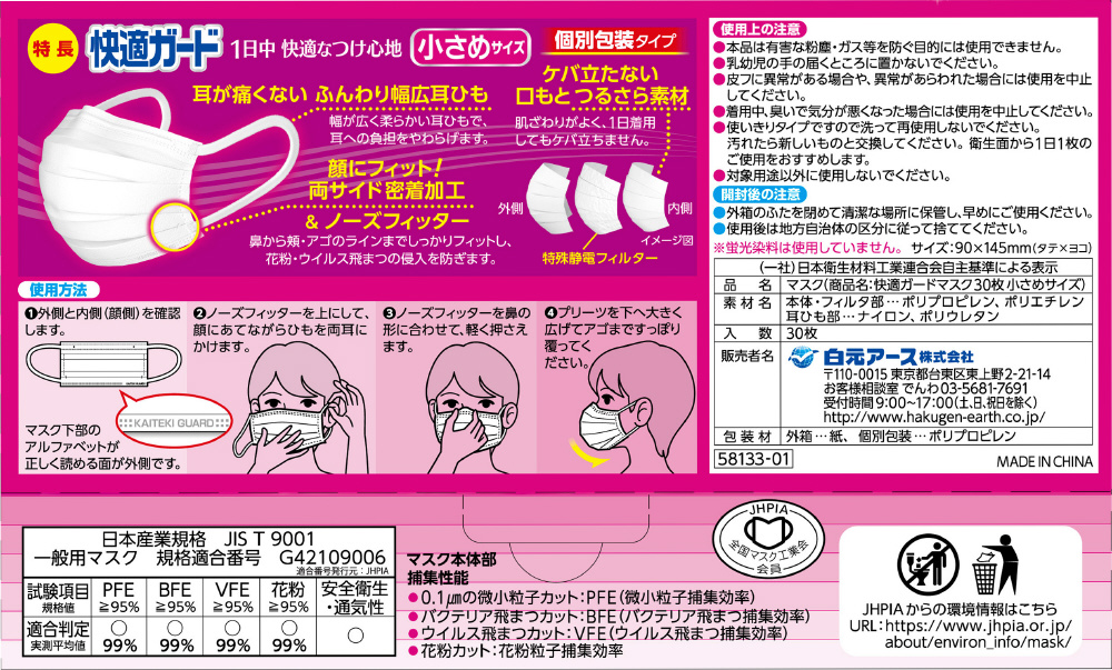快適ガードマスク 小さめサイズ30枚入