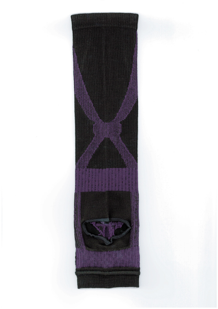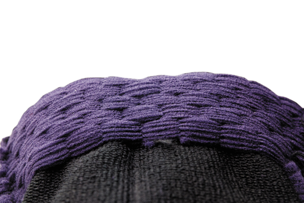 密集したクッション編みが土踏まずを盛り上げ、3点歩行を促します。