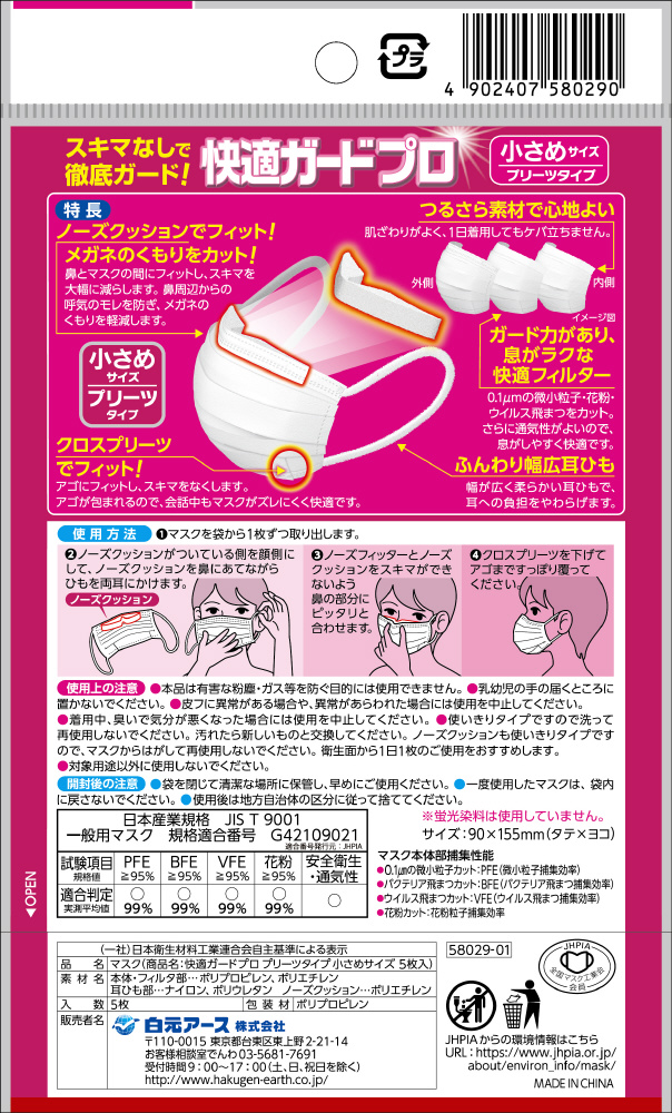 快適ガードプロ プリーツタイプ 小さめサイズ5枚入