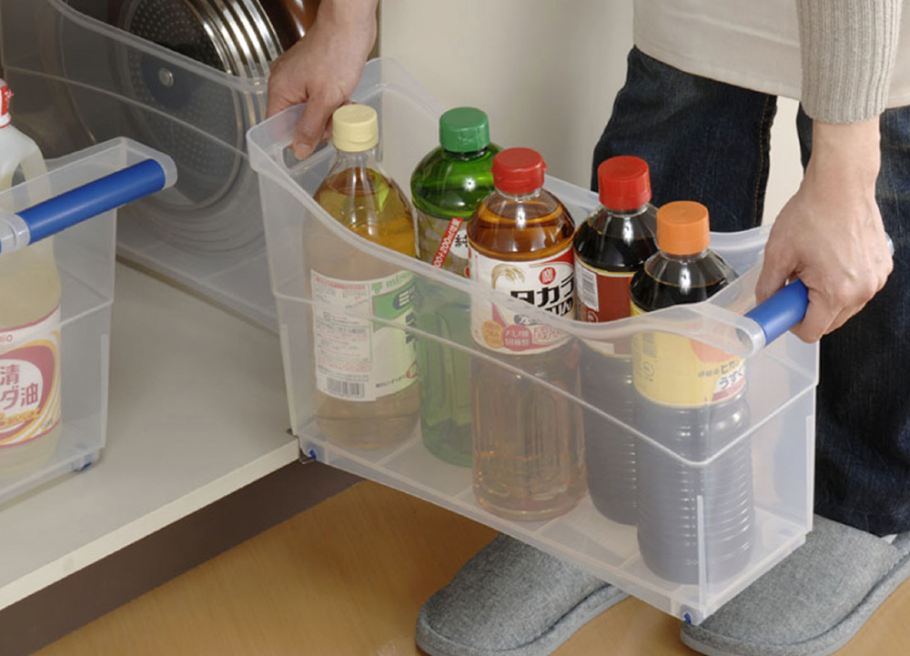 ●ハンドル付のストッカーでシンク下を引き出し式収納に