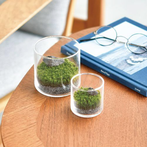 ●「グラストモス」なら、あっという間におしゃれな苔テラリウムが完成して水やりなどの手間をかけることなく、苔のインテリアを楽しめます。