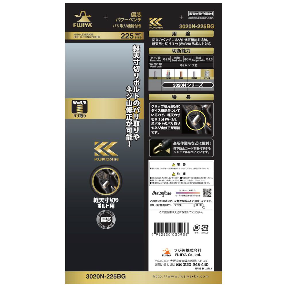 3020N-225BG 偏心パワーペンチ 黒金