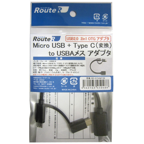 USB変換ホストアダプタ [USB-C+micro USB オス→メス USB-A] ブラック RC-OTG2MTCB