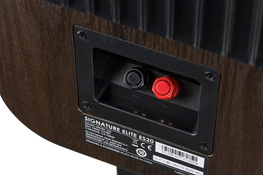 Polk Audioの特許技術であるパワーポートは、緻密に設計されたその形状によってポートを出入りする空気の流れをスムーズにし、従来のバスレフポートよりも歪みや乱流を大幅に抑えることができます。さらに、開口部の表面積を拡張することにより、一般的なバスレフポートに比べて約3dBの出力アップを実現しています。ES15は、背面にパワーポートを搭載しており、コンパクトサイズながら、量感豊かでクリアな低音再生を実現しています。