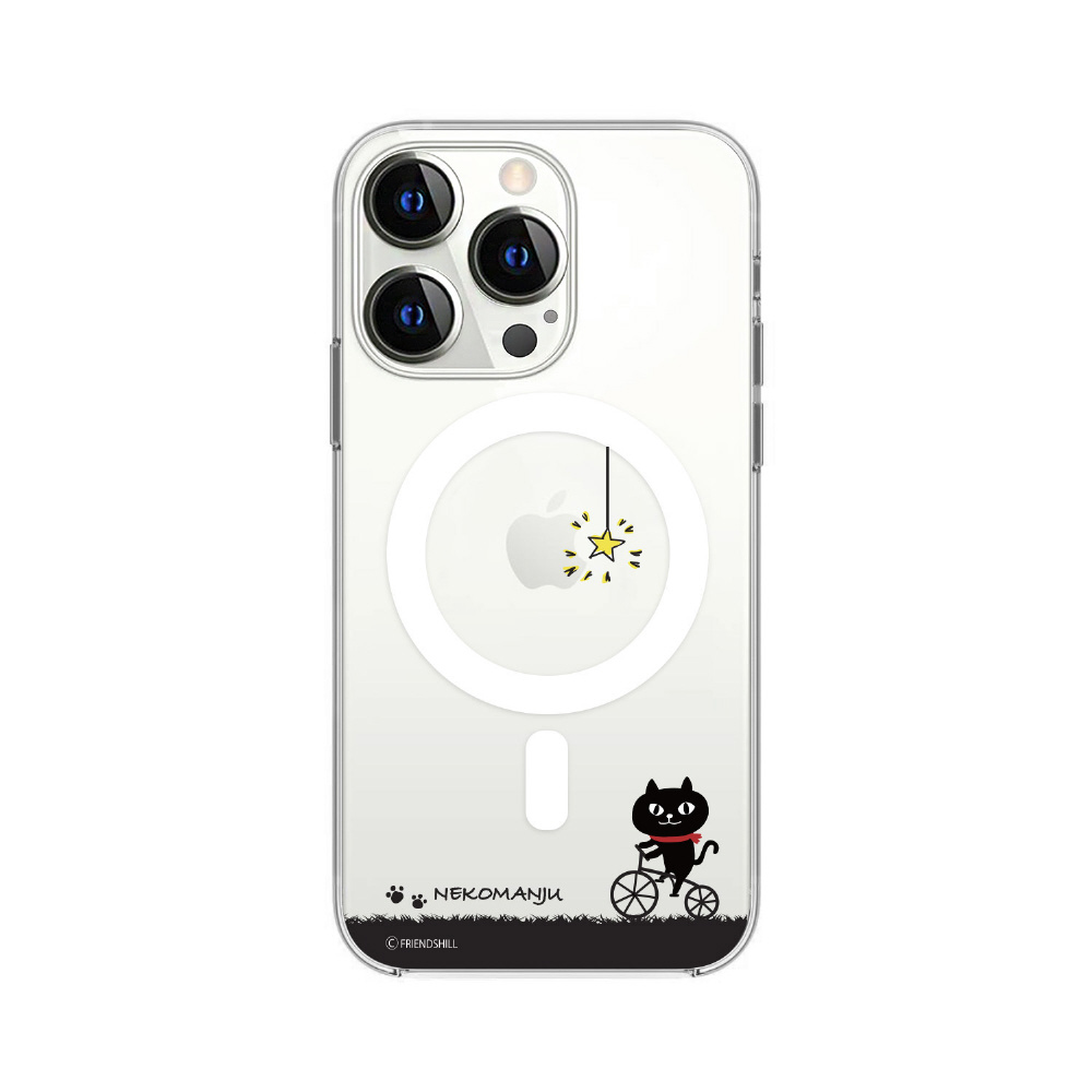 ユニークな「ネコマンジュウ」の公式ライセンス品。マグネット搭載のMagsafe対応ハイブリッドクリアケース。変色のないUVプリント