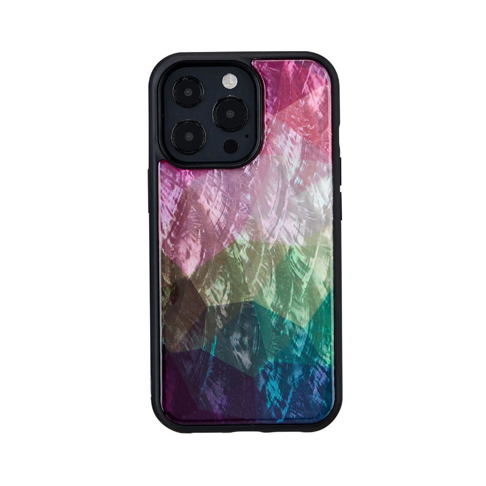 優しい天然貝ケース。ハイブリッドはめ枠で着脱しやすい。