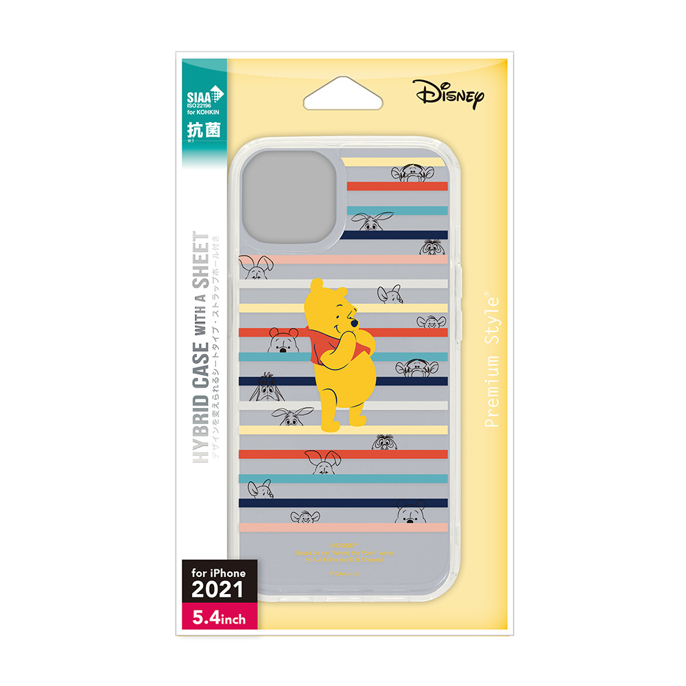 ディズニーキャラクターデザインのシートとセットになった抗菌仕様の2021年 iPhone 5.4inch 用 抗菌ハイブリッドケース