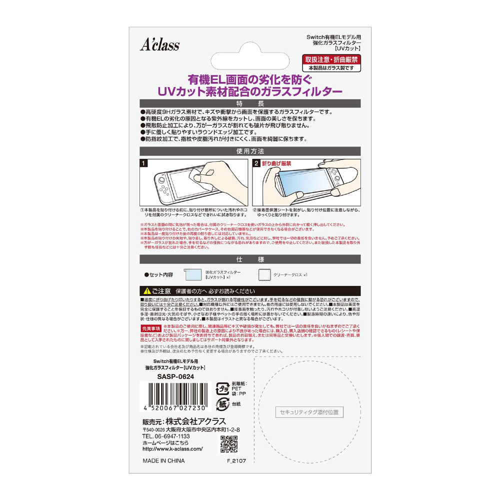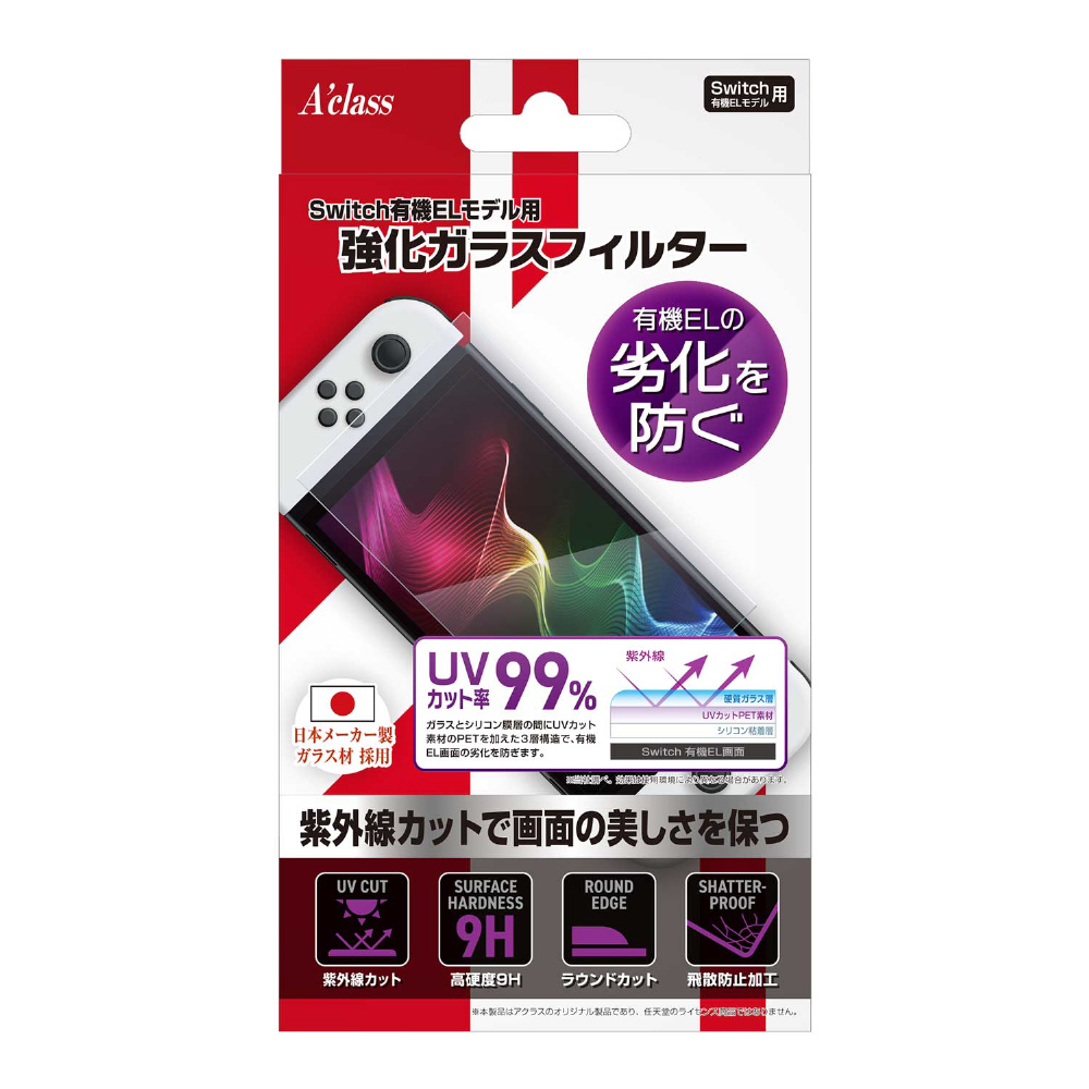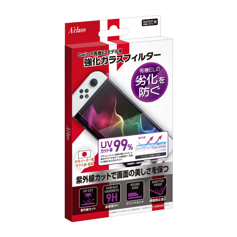 Switch有機ELモデル用 強化ガラスフィルター【UVカット】 SASP-0624