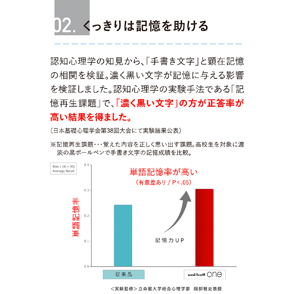 記憶に残りやすい効果が実証されたゲルインクボールペン。
