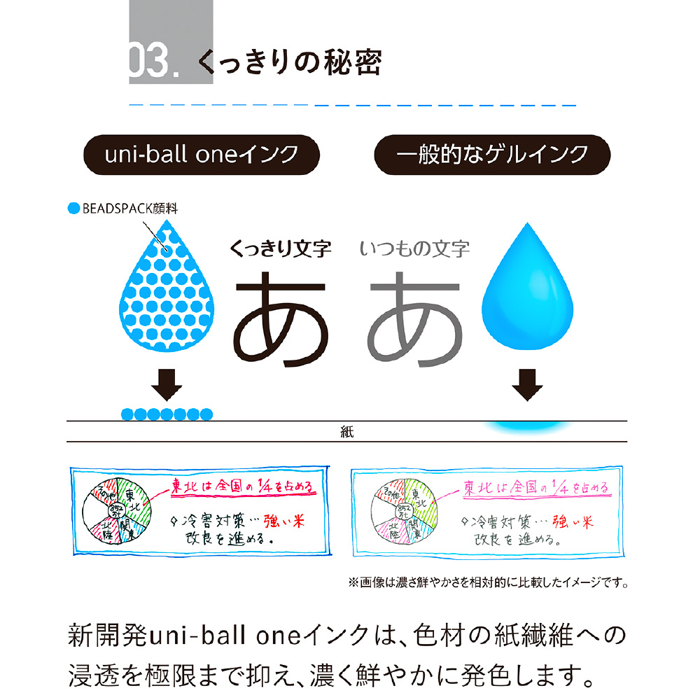 『uni-ball one(ユニボール ワン)』のインクは、一般的なゲルインクと異なり、