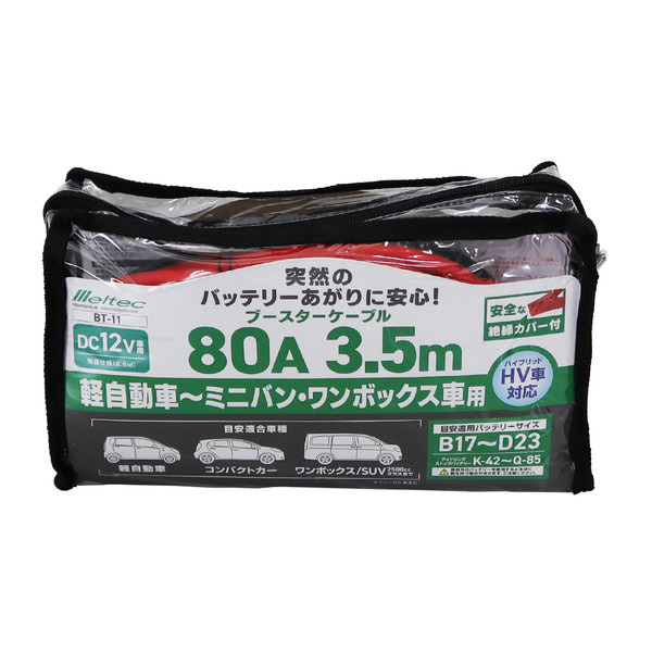 ブースターケーブル HV車対応用 DC12V・80A 3.5m BT-11