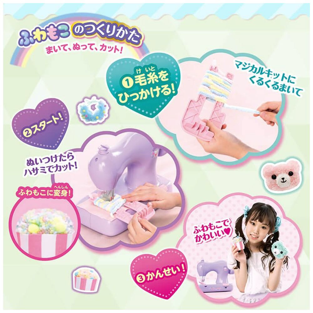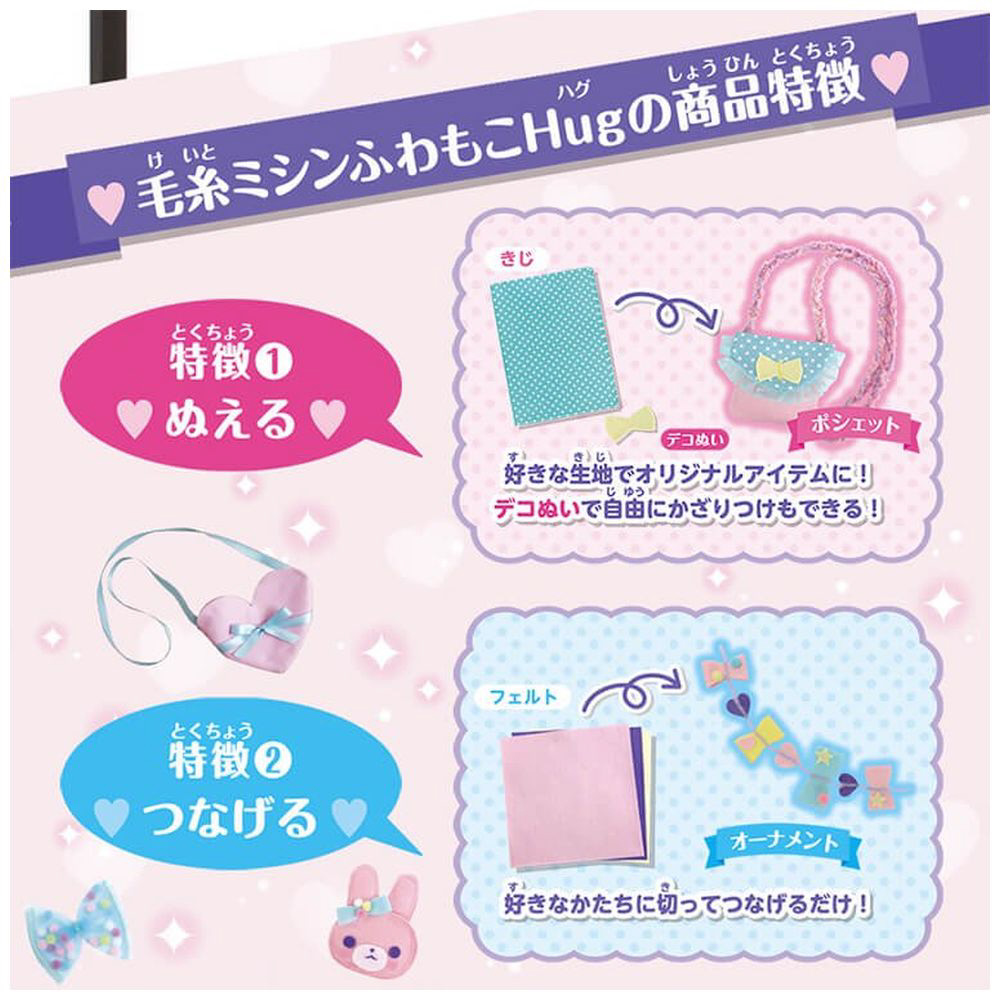 ■面倒な糸かけ、下糸のセット、糸通しは全て不要で、簡単に縫ったり、つないだり、刺繍したり、ふわもこを作ることができます。