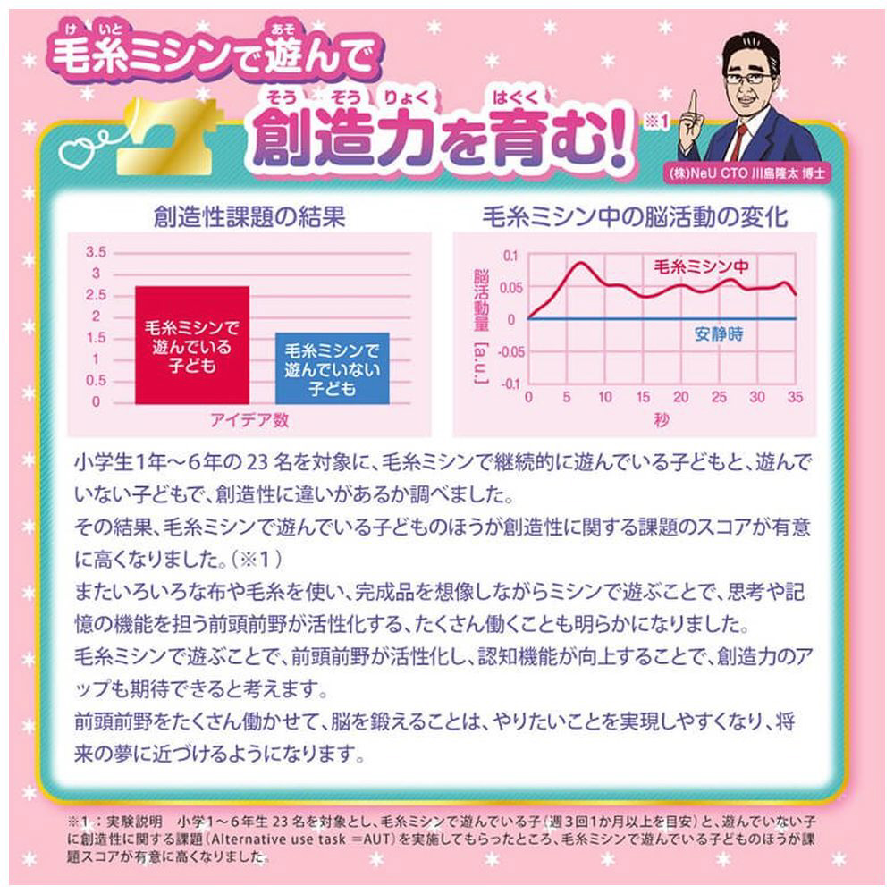 ■毛糸ミシンで遊ぶと創造性アップ!毛糸ミシンで遊ぶ子は、創造性が高いことが分かりました。
