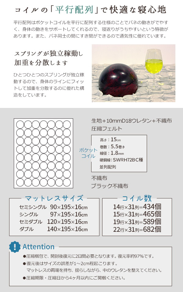 【フレーム&マットレス】プレインパネルベッド 圧縮ポケットコイルマット付 ブラウン E379001-87-SD-172BDG [セミダブルサイズ]